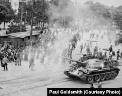 "Я приехал в день накануне вторжения, даже в день вторжения – потому что оно началось в 11 часов вечера (в ночь с 20 на 21 августа войска СССР и четырех других стран Варшавского договора пересекли границу Чехословакии – НВ). Знакомые студенты пригласили меня переночевать в общежитии рядом с Пражским замком. Утром я проснулся от звука, который принял за шум грузовиков. Я выглянул из окна и понял, что это танки, которые захватывают Университет", – рассказал Голдсмит телеканалу "Настоящее Время".