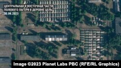 По словам местных жителей, ремонтно-строительные работы на территории бывшей воинской части в деревне Цель (90 км от Минска и 20 км от Осипович) начались в июне. Еще 17 июня 2023 года следов развертывания полевого лагеря на территории военной части возле Цели не было. Это видно на спутниковом снимке сервиса Planet.com, который нашла и опубликовала белорусская служба Радио Свобода.